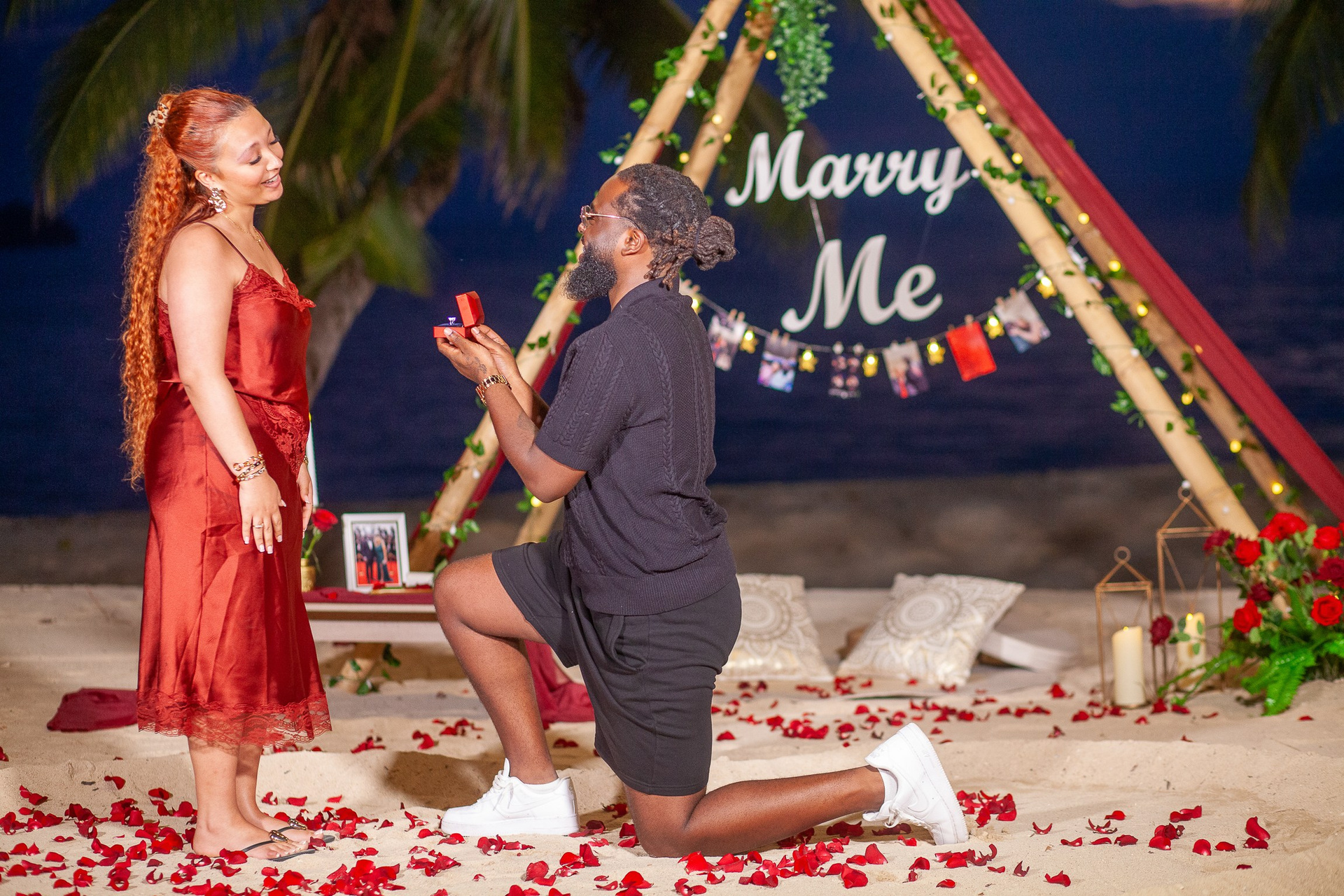 - Big letters MARRY ME + pirotechnic fountains — 30 sec.